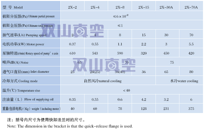 該系列真空泵可單獨使用,亦可作為增壓泵、擴(kuò)散泵、分子泵及鈦泵的前級泵使用,設(shè)有氣鎮(zhèn)閥時,可抽送適量的可凝性氣體、濕空氣或氣水混合氣體,但介質(zhì)中不能含有顆粒狀固體物質(zhì)。